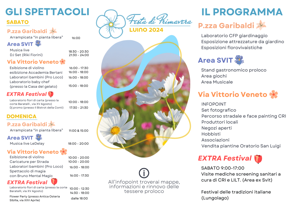 La festa di primavera si svolgerà in via Vittorio Veneto e piazza Garibaldi a Luino il 18 e 19 Maggio.